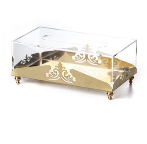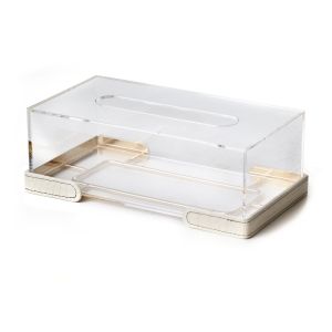 קופסת טישו מכסה אקרילי מסגרת ורגליים זהב נירוסטה 25/13 ס"מ גובה 11 ס"מ