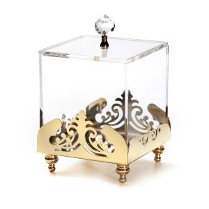 קופסת מרובעת מכסה אקרילי מסגרת ורגליים זהב נירוסטה 10/10 ס"מ גובה 16 ס"מ