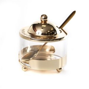 סוכרון/ כלי לדבש בסיס ומכסה זהב קוטר 10 גובה 10.5 ס"מ