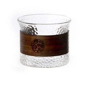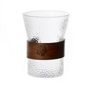 סט 6 כוסות זכוכית שקופה רקועה 350 מ"ל וקישוט במבוק