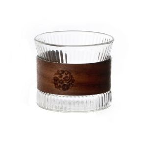 סט 6 כוסות זכוכית שקופה פסים 165 מ"ל וקישוט במבוק