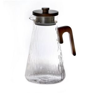 1.2 ליטר קנקן תה זכוכית שקופה ידית עץ שחורה ומכסה עץ שחור/נירוסטה