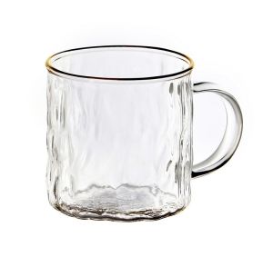 סט 6 מאגים זכוכית שקופה פס זהב 300 מ"ל