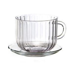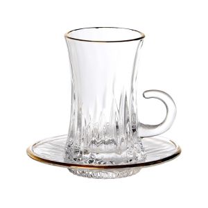 280 מ"ל סט 6 כוסות תה ותחתית זכוכית רקועה