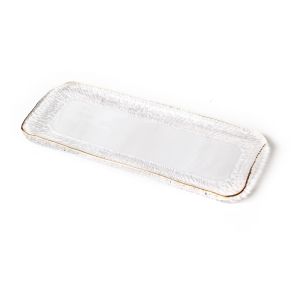 מגש מלבני גבישי זכוכית שקופה פס זהב 27.3/13 ס"מ