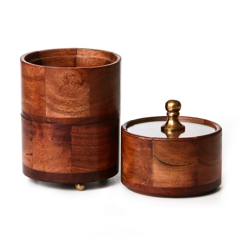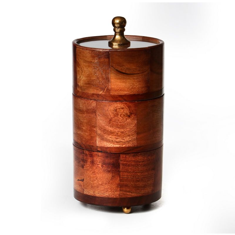 מעמד 3 קומות קערות עץ מכסה זכוכית גובה 27.5 קוטר 13.5 ס"מ