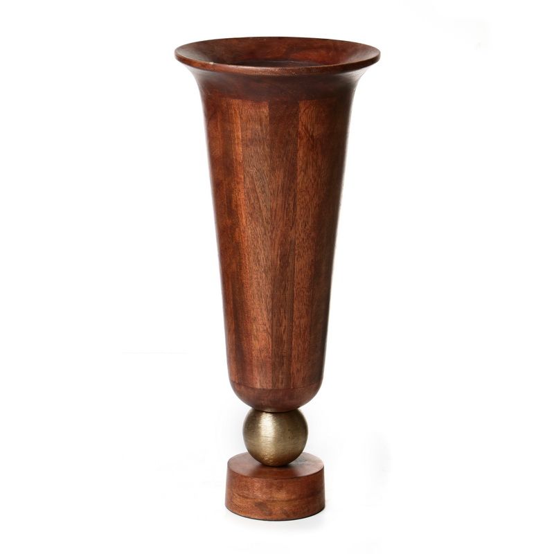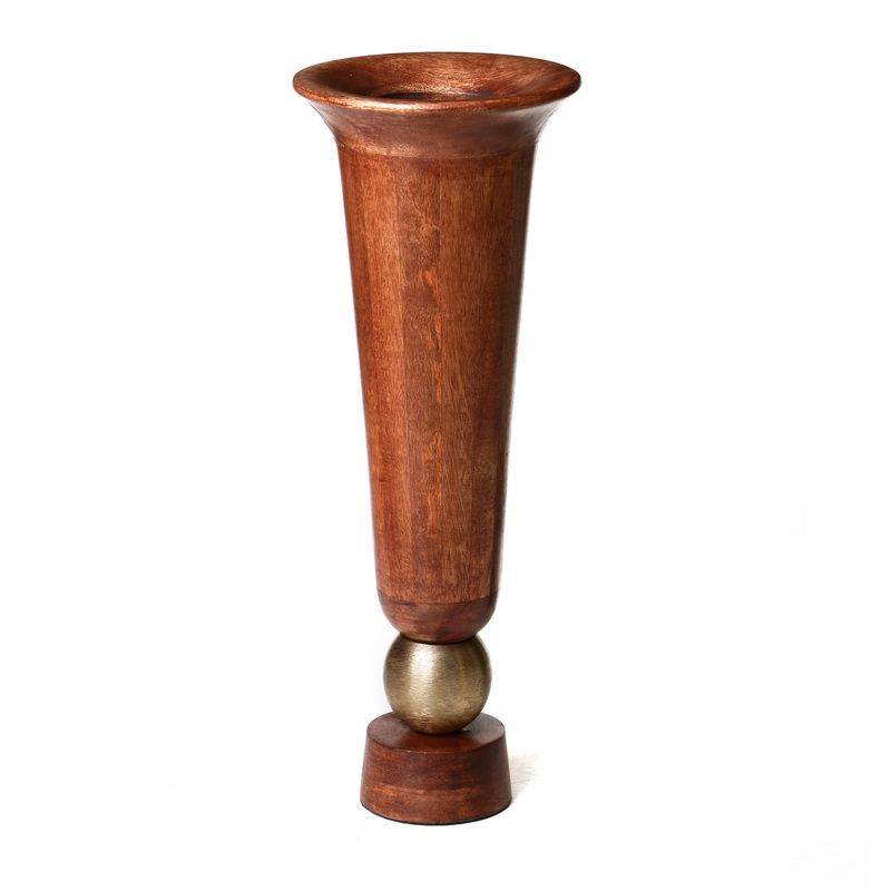 אגרטל עץ על בסיס / זהב קוטר 20 גובה 48.5 ס"מ