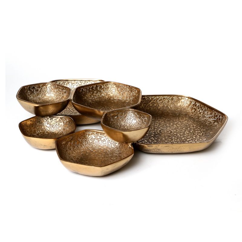 סט 6 מגשים ערבסק מרובעים זהב אלומיניום 18/18 גובה 6 ס"מ