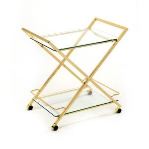 עגלה לתה X מלבנית 48/76/h77 זהב מתכת/זכוכית
