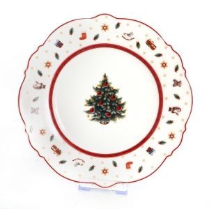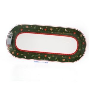 מגש לעוגה אובלי Christmas tree ירוק/ אדום 34/15.3 ס"מ New Bone China