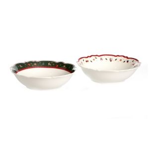 סט 2 קערת סלט עגול Christmas tree לבן/ אדום/ ירוק קוטר 23 עומק 6.2 ס"מ New Bone China