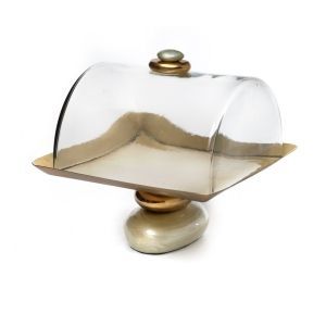 מגש על בסיס חלוקי נחל בז' אלומיניום ופעמון זכוכית 23/23 גובה 23 ס"מ