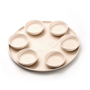 מגש על בסיס חלוקי נחל בז' אלומיניום קוטר 31 גובה 10 ס"מ