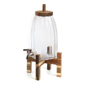 סמובר 4.5 ליטר זכוכית שקופה על בסיס עץ 22.5/17.5 ס"מ גובה 33.5 ס"מ
