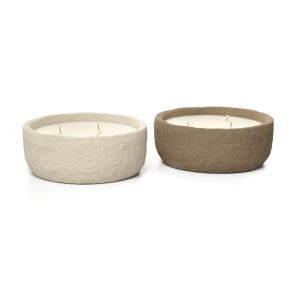 זוג נרות ריחניים אמבר וריח רענן בטון חום ולבן גובה 6.6 ס"מ קוטר 16.2 ס"מ