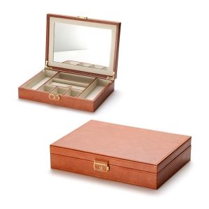קופסת תכשיטים מראה PU חום 22/18 ס"מ גובה 8.5 ס"מ