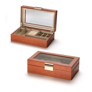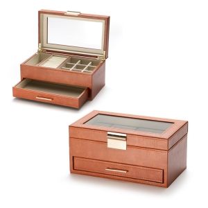 קופסת תכשיטים חלון זכוכית PU חום 28/17.5 ס"מ גובה 14 ס"מ