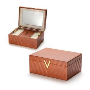 קופסת תכשיטים מראה PU חום 30.5/23 ס"מ גובה 7 ס"מ