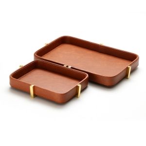 סט 2 מגשים PU חום 45/30 ס"מ 41/25 ס"מ