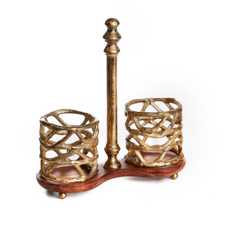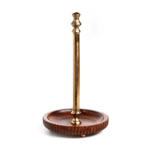מעמד למגבת נייר עץ פסים זהב קוטר 17.5 גובה 31 ס"מ