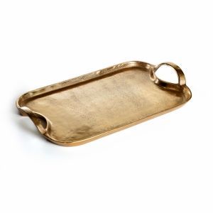 מגש מתכת מלבני זהב ידיות מעוגל 33/19.5 ס"מ פינות מעוגלות