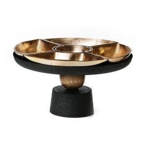 6 קעריות הגשה זהב על בסיס אלומיניום שחור עגול קוטר 31.5 גובה 18 ס"מ