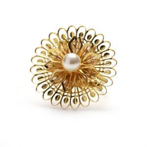 סט 6 חבקים למפיות פרח זהב ופנינה