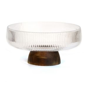 קערה זכוכית שקופה על רגל עץ גובה 11.5 קוטר 24.5 ס"מ