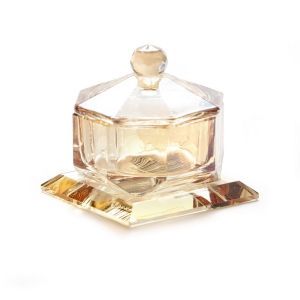 מלחיה קריסטל ומכסה ענבר על בסיס קוטר 5 ס"מ