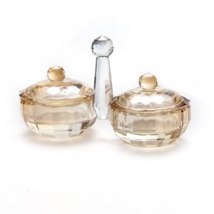 זוג מילחיות פתוחות קריסטל ענבר מכסה וידית אפור גובה 10 ס"מ
