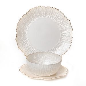 מערכת אוכל זכוכית 18 חלקים Kim Pearl פס זהב גבישי מחוספס קוטר 27/21/16.5 ס"מ צלחת למרק עומק 4.8 ס"מ