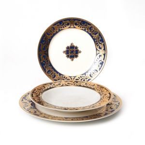 מערכת אוכל 18 חלקים Jessica כחול/ זהב קטרים 26/22/19 ס"מ New Bone China