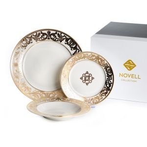 מערכת אוכל 18 חלקים Jessica לבן/ זהב קוטר 26/20/19 ס"מ New Bone China