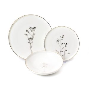 מערכת אוכל 18 חלקים Athen floral לבן/ זהב קטרים 28/20/20 ס"מ Fine Bone China
