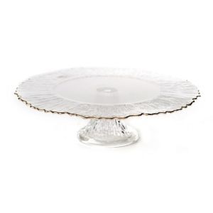 מגש עגול על רגל Kim קוטר 32 ס"מ זכוכית גבישי שקופה פס זהב גובה 8 ס"מ