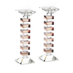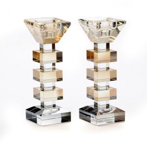 זוג פמוטים קריסטל עם ברכה מעמד ענבר ואפור 18/7 גובה 6 ס"מ