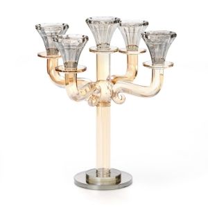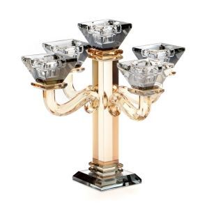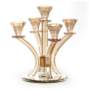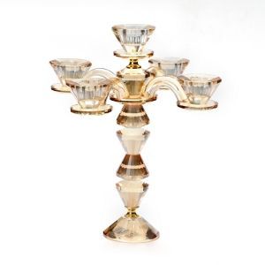 פמוט 5 קנים קריסטל ענבר וזהב גובה 27 ס"מ קוטר 24 ס"מ