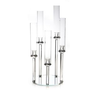 פמוט 5 קנים קריסטל ענבר גובה 24 ס"מ קוטר 21 ס"מ
