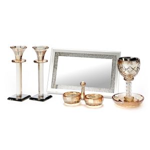 סט קריסטל לכלה זוג פמוטים כוס קידוש מגש מראה /ענבר