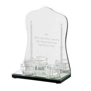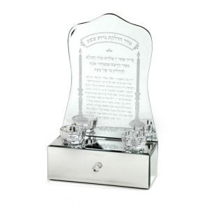 פמוטי שבת גב ומגירה מראה עם עיטור יהלומים כיתוב שבת כסוף
