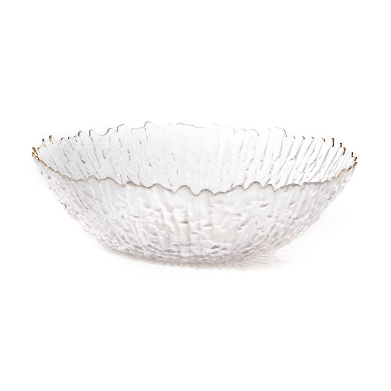 זוג קערות Kim זכוכית שקופה פס זהב גבישי מחוספס קוטר 31 ס"מ עומק 9 ס"מ