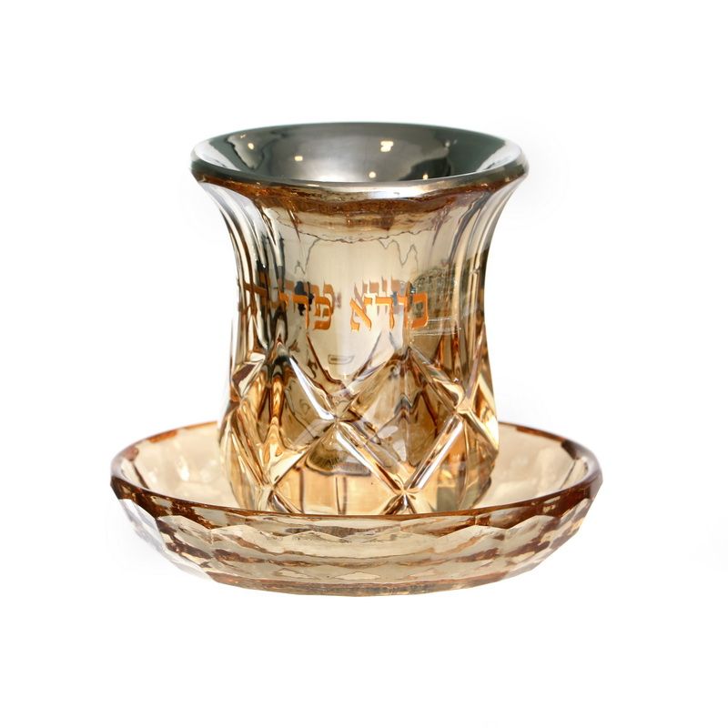 כוס קידוש ותחתית קריסטל ציפוי זהב גובה 15.5 קוטר 11ס"מ