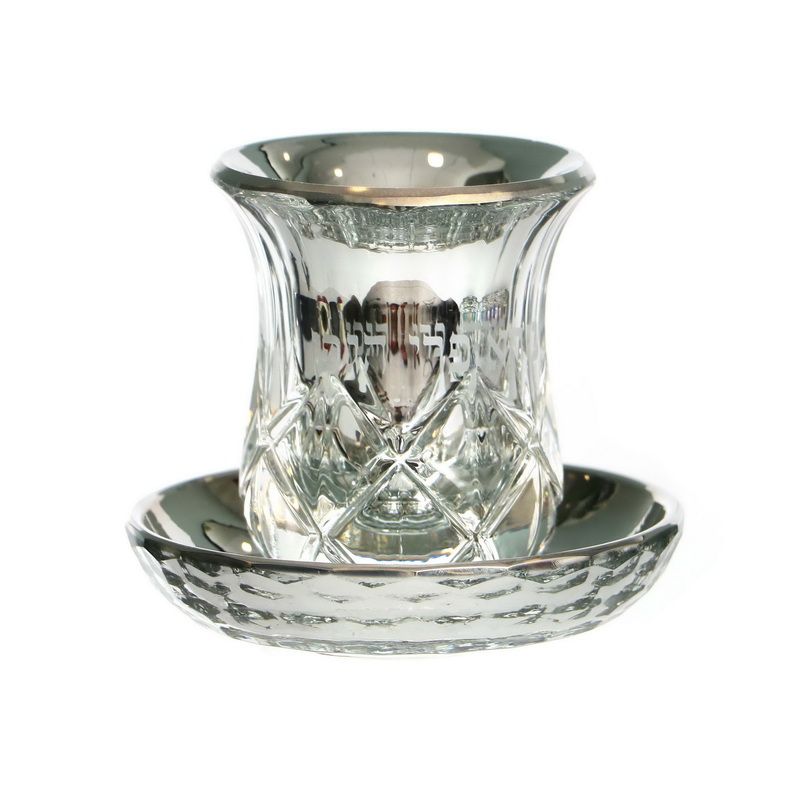 כוס קידוש ותחתית קריסטל ציפוי כסף גובה 15.5 קוטר 11ס"מ