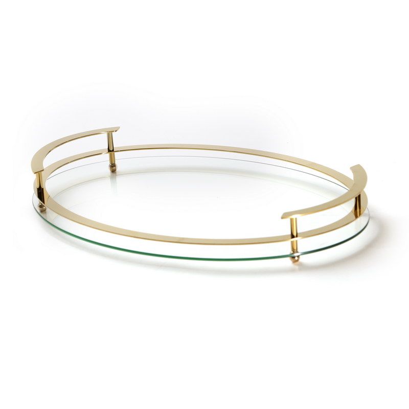 מגש זכוכית אובלי ידיות זהב 43/30 ס"מ