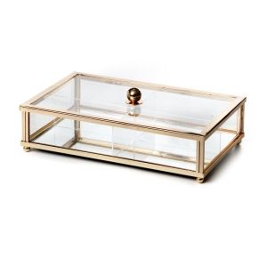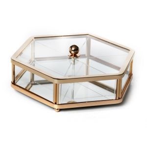 מגש זכוכית אובלי מחולק ל 4 זהב מכסה זכוכית שקופה דופן רקוע 32/20 גובה 11 ס"מ - NVL