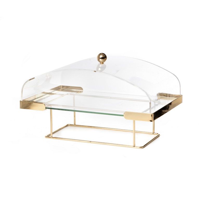 מגש זכוכית מלבני על סטנד זהב ופעמון אקרילי 34/22 גובה 20 ס"מ - NVL