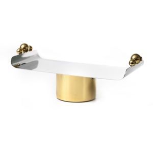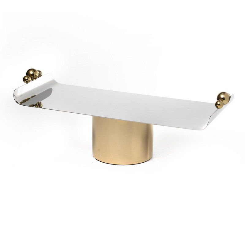 מגש מלבני על רגל זהב וכסף / כדורי זהב מתכת 42/17 ס"מ גובה 14 ס"מ
