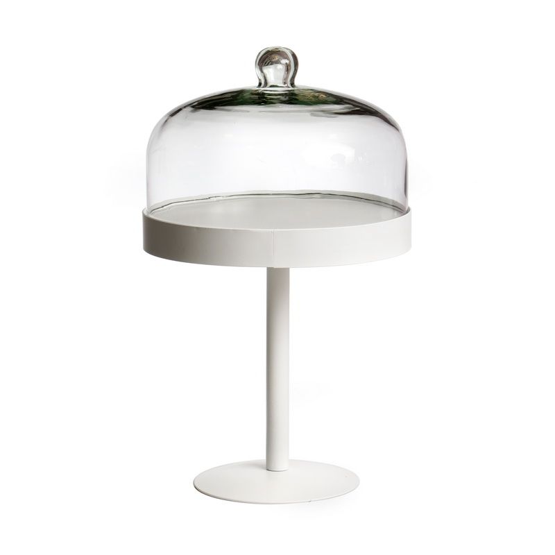 מגש על רגל עגול מתכת לבנה פעמון זכוכית מבית המותג נובל קולקשיין.