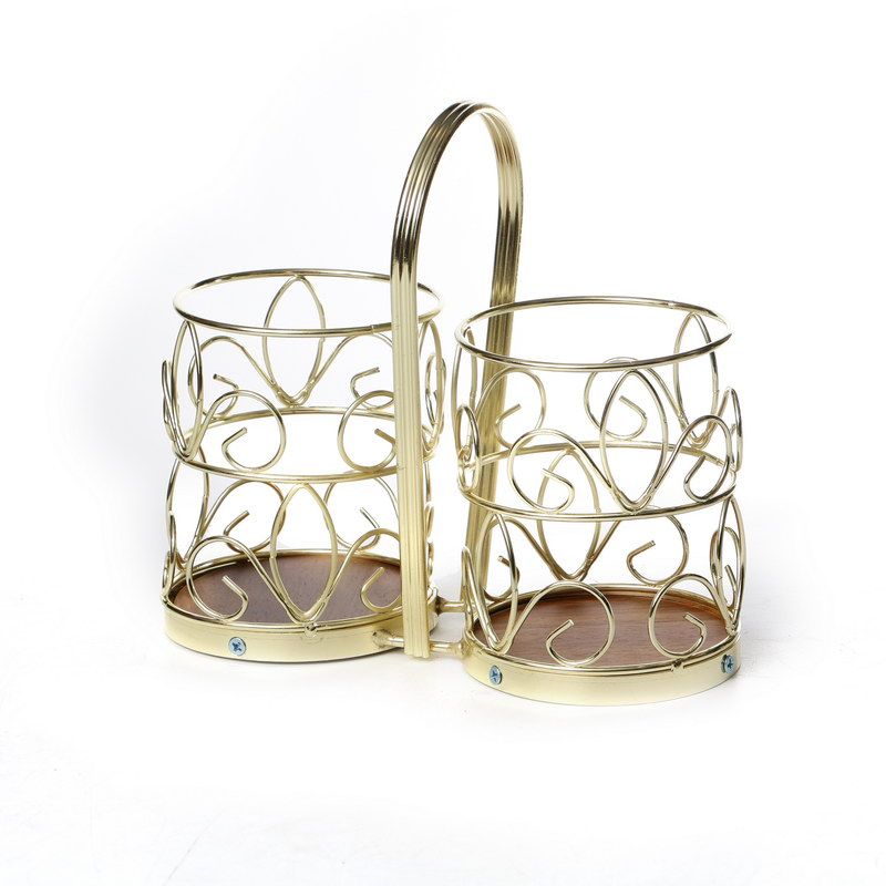 מחזיק זוג כוסות שבלול זהב בסיס עץ