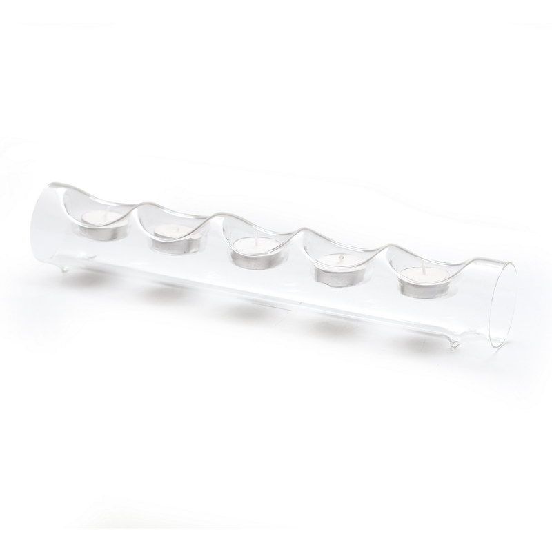 מעמד צינורי ל 5 נרות זכוכית שקופה אורך 35 ס"מ גובה 5.6 ס"מ